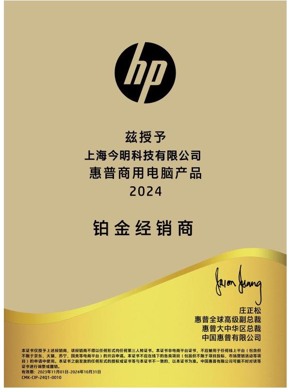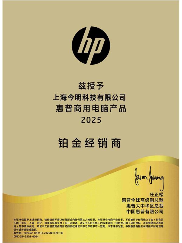 惠普商用電腦產品2025鉑金經銷商