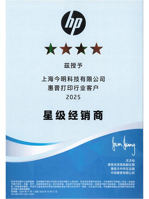 2025年惠普打印機星級經銷商